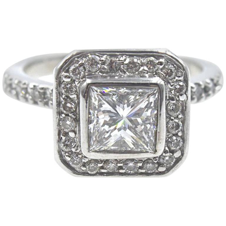 1 Carat Princess Cut Diamond Halo Engagement Ring GIA Certified F/SI1 at 1stDibs 1 carat