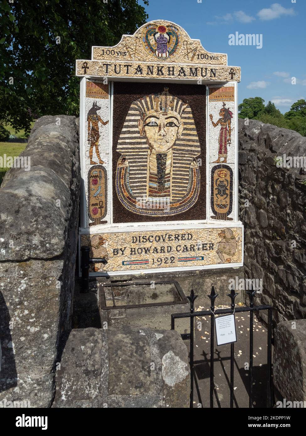Traditional well dressing on the theme of Tutankhamun in the village of Ashford In The Water