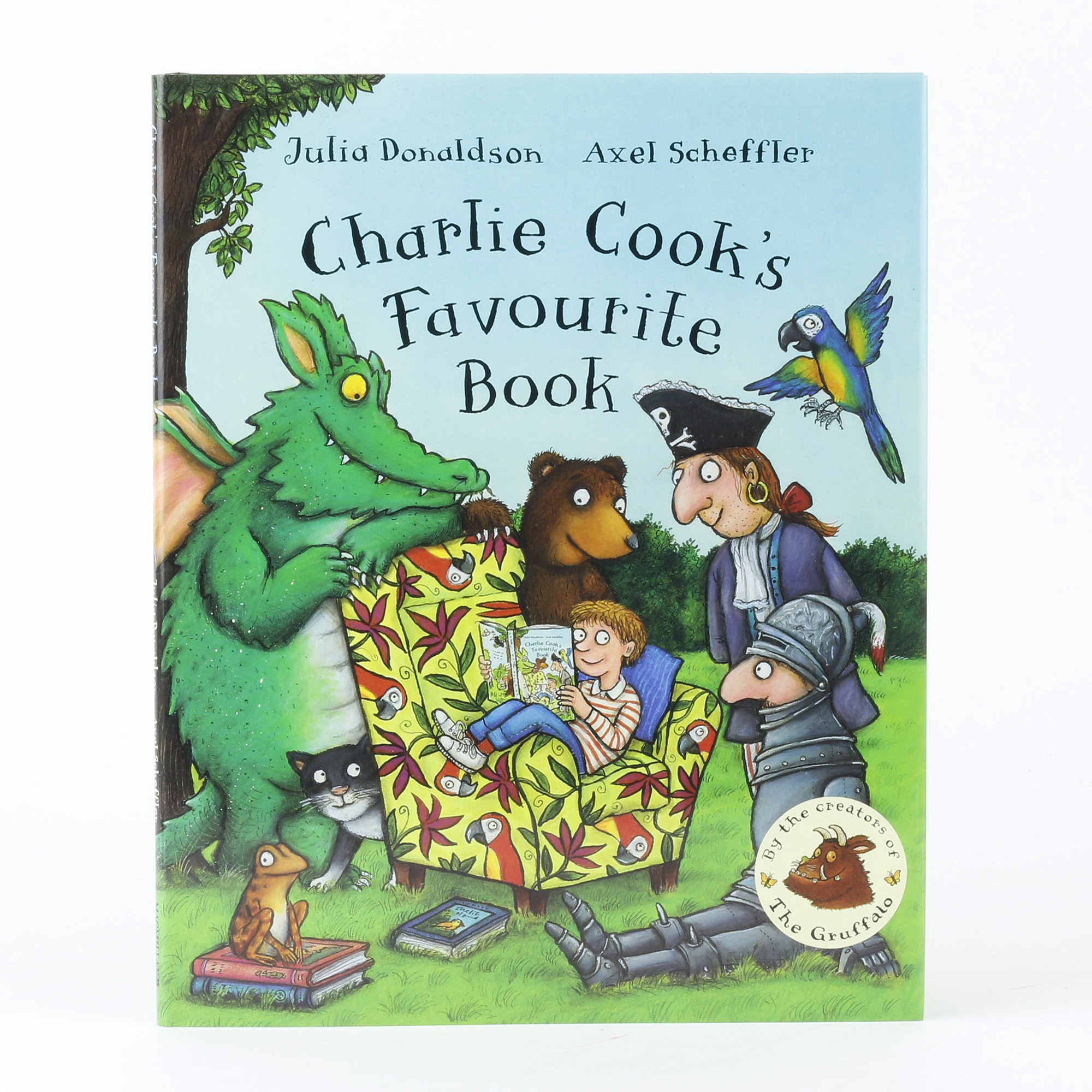 Charlie Cook's Favourite Book. Written by Julia Donaldson. Charlie Cook is reading a book about a pirate captain, who is reading a book about Goldilocks, who is reading about a knight, who is reading about a frog . . . From kings and queens to aliens and ghosts, there's something for everyone in Charlie's amazing book! Axel says: