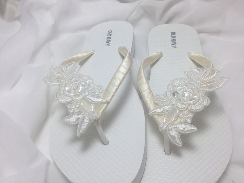 Wedding Ivory Flip Flops Ivory Lace Flip Flop Bridal Etsy
