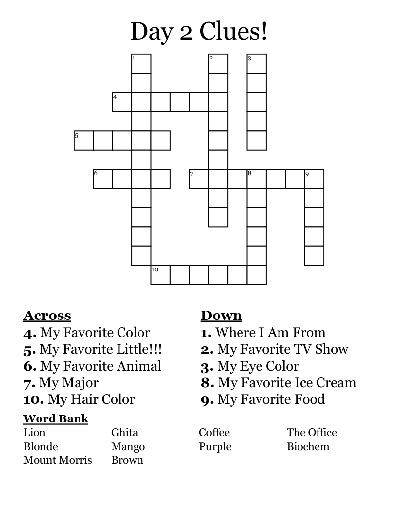 Day 2 Clues! Crossword WordMint