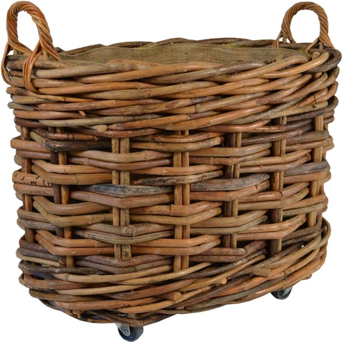 Wovenhill Bamboo Rattan Oval Extra Large Storage Log Basket with Wheels and Hoop Handles W90 x