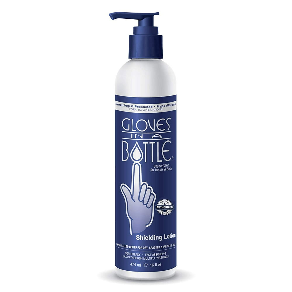 Gloves In A Bottle Hand Shielding Lotion - relief for extremely dry hands, lasts though washing, dermatologist approved (8 Fl Oz) 28 reviews. $24.96 $21.95. Size. Add to Cart. A hand-saving shielding lotion that protects and repairs your hands from irritation, dryness, and severe cracking. This lightweight, non-greasy formula absorbs.