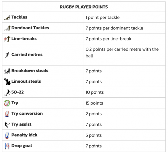 Here's the breakdown of how both 'team' points and 'individual' points are scored in the game. Team points: Win: 8 points. Draw: 4 points. Defeat: 0 points. 'Individual' points: Tackles: 1 point.