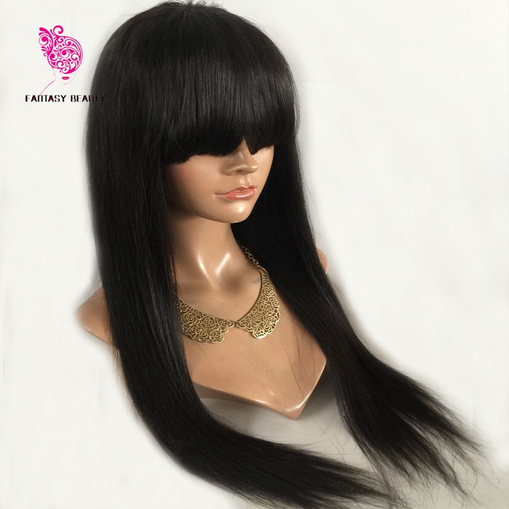 8A Full Fringe Full Lace Wig Unprocessed Brazilian Virgin Human Hair Bnags Wig Glueless Lace