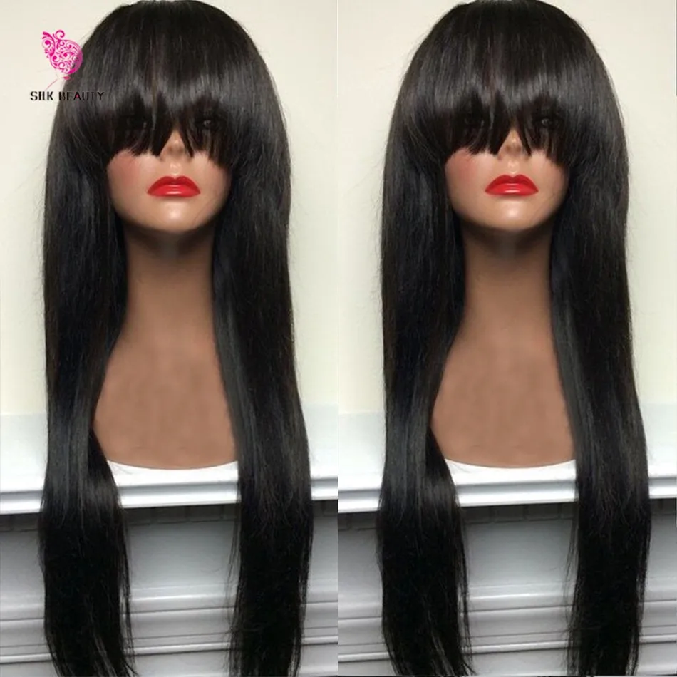 Straight Lace Front Wig Peruvian Virgin Hair Full Fringe Human Hairs Glueless Fulls Laces Wigs