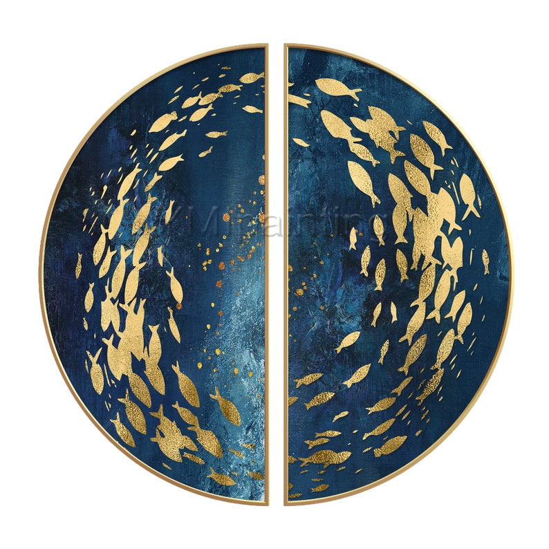 Gold art set of 2 wall art Sea Navy blue Ymipainting Gold Etsy