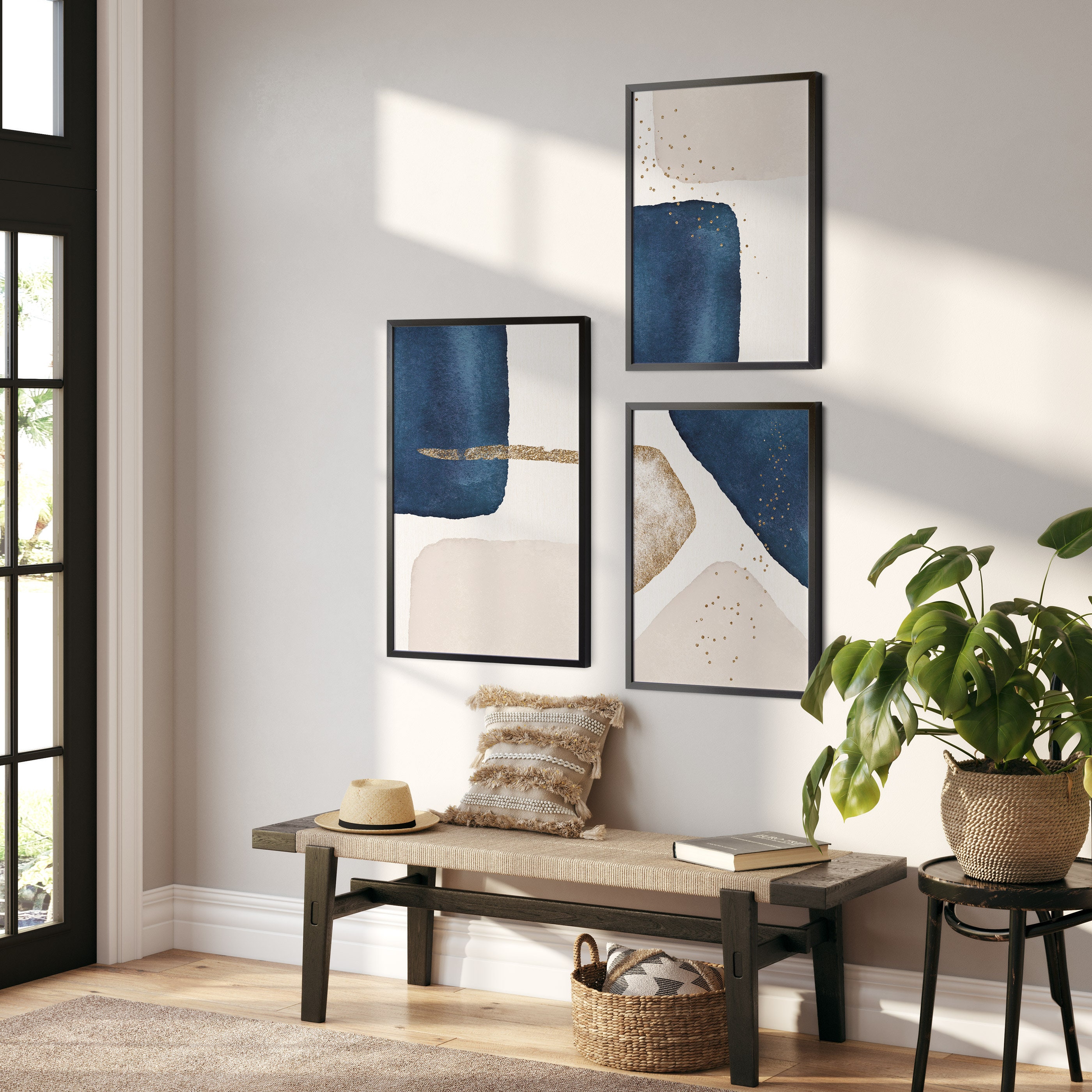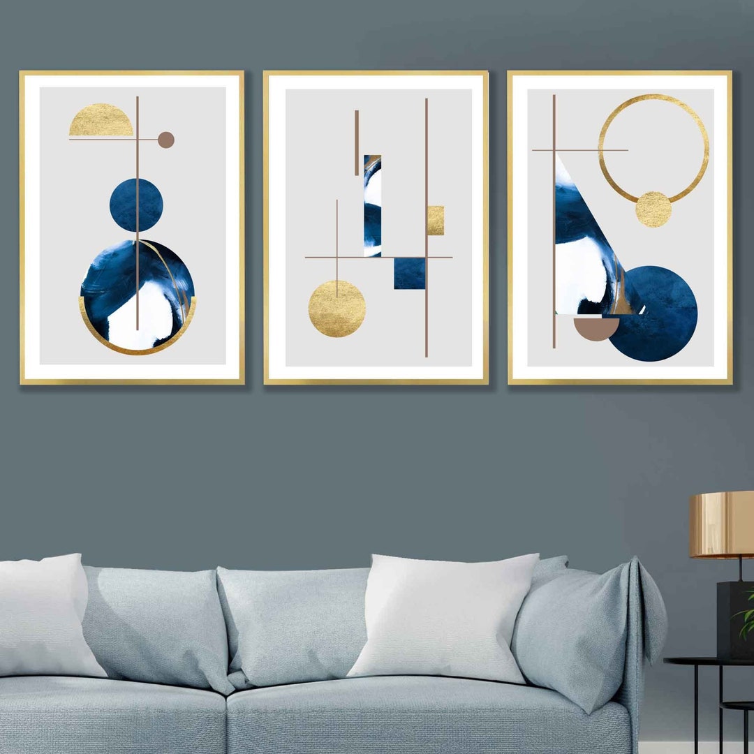 Set of 3 Prints Framed Wall Art Modern Abstract Gold Navy Blue Etsy Blue wall art, Living