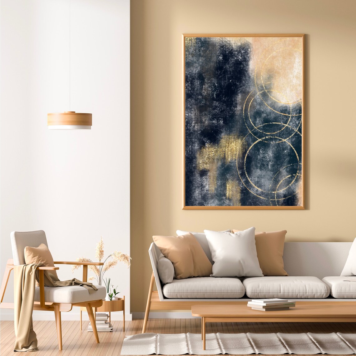 Abstract Art Print Navy Gold Wall Art Prints Home Decor Etsy