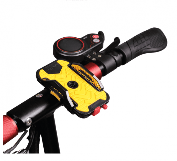 One of the more novel designs on the list, The Tiakia e-scooter phone holder has a clamp design that covers the outskirts of the bottom half of the phone. As a result, it can fit a wide range of smartphones, covering almost all available from 3.5 to 7 inches.