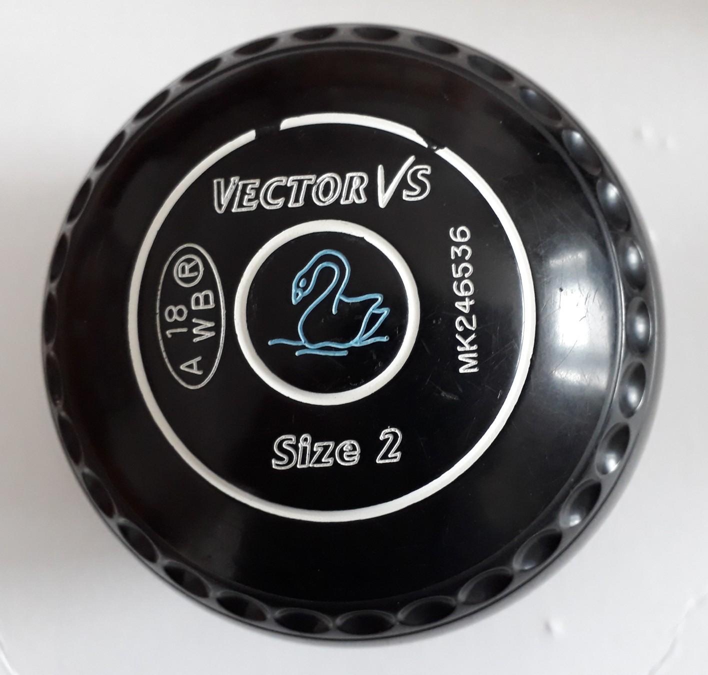 Taylor Vector-VS Bowls - set of 4 in black - heavy weight in size 2; Ideal bowl for fast surfaces and indoor greens; Lenient gentle draw to the jack with no hook at the end - well suited to front end bowlers; Narrow to mid-bias - runs in between the Vector VS and Ace models; Sold as a set of 4 - 15 year guarantee