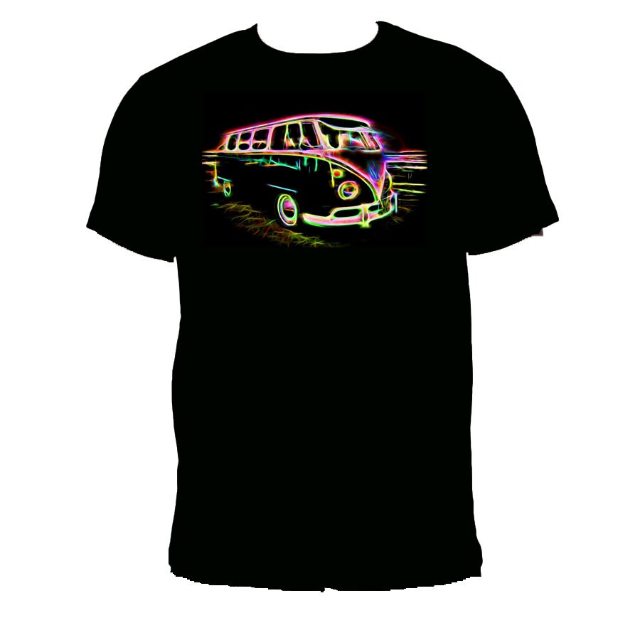 VW Camper Van Neon Effect T Shirt Black T by PersonalisedGoldGift